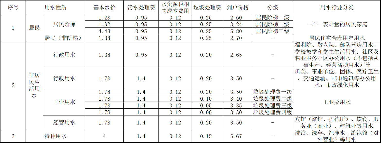 ? ? ? ?1、居民生活用水(階梯)指一戶一表計(jì)量的居民家庭用戶,用水量以一個(gè)年度為計(jì)量周期,月度滾存使用。